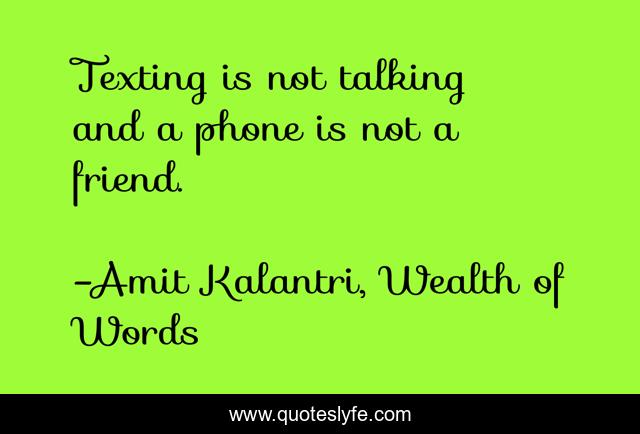 "Amit Kalantri, Wealth of Words Quotes." Quoteslyfe.com, 2025. Fri. 05 Dec. 2025. <https://www.quoteslyfe.com/quote/Texting-is-not-talking-and-a-phone-23090>.