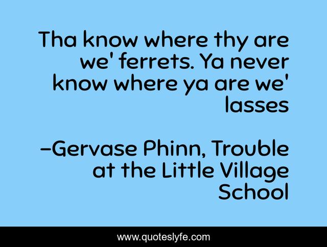 This page presents the quote "Tha know where thy are we' ferrets. Ya never know where ya are we' lasses". Author of this quote is Gervase Phinn, Trouble at the Little Village School. This quote is about school, village, phinn, yorkshire,.