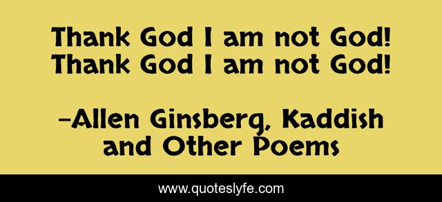 This page presents the quote "Thank God I am not God! Thank God I am not God!". Author of this quote is Allen Ginsberg, Kaddish and Other Poems. .