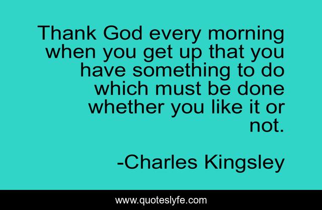 This page presents the quote "Thank God every morning when you get up that you have something to do which must be done whether you like it or not.". Author of this quote is Charles Kingsley. .