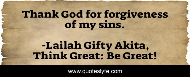 "Lailah Gifty Akita, Think Great: Be Great! Quotes." Quoteslyfe.com, 2025. Sun. 07 Dec. 2025. <https://www.quoteslyfe.com/quote/Thank-God-for-forgiveness-of-my-sins-62642>.