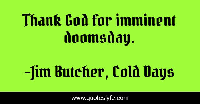 "Jim Butcher, Cold Days Quotes." Quoteslyfe.com, 2025. Mon. 08 Dec. 2025. <https://www.quoteslyfe.com/quote/Thank-God-for-imminent-doomsday-281319>.