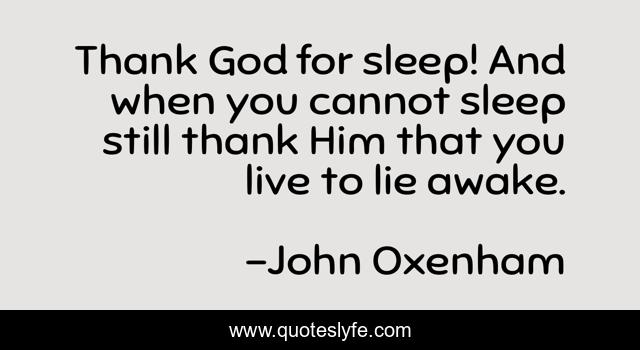 This page presents the quote "Thank God for sleep! And when you cannot sleep still thank Him that you live to lie awake.". Author of this quote is John Oxenham. .
