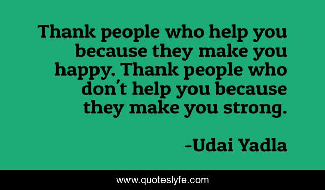 "Udai Yadla Quotes." Quoteslyfe.com, 2025. Sat. 06 Dec. 2025. <https://www.quoteslyfe.com/quote/Thank-people-who-help-you-because-they-14216>.