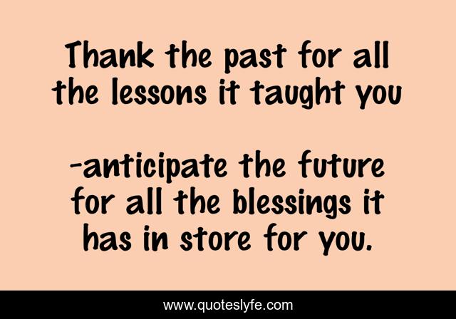 "anticipate the future for all the blessings it has in store for you. Quotes." Quoteslyfe.com, 2025. Sun. 07 Dec. 2025. <https://www.quoteslyfe.com/quote/Thank-the-past-for-all-the-lessons-121046>.