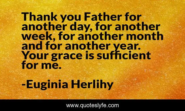 This page presents the quote "Thank you Father for another day, for another week, for another month and for another year. Your grace is sufficient for me.". Author of this quote is Euginia Herlihy. .