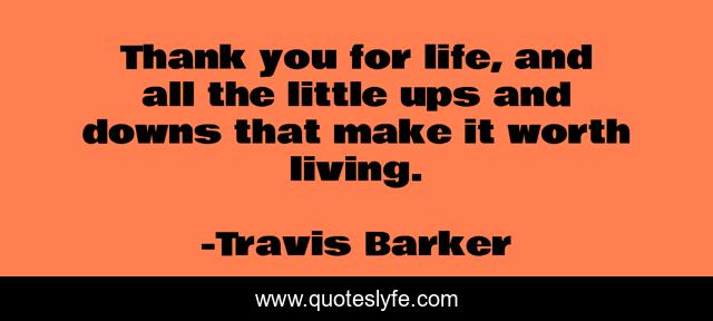 This page presents the quote "Thank you for life, and all the little ups and downs that make it worth living.". Author of this quote is Travis Barker. This quote is about thank you, living, life,.