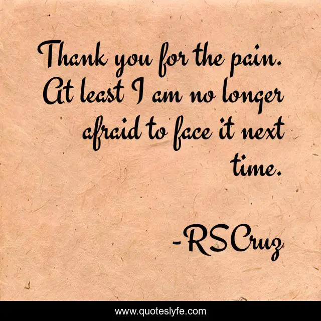 "RSCruz Quotes." Quoteslyfe.com, 2025. Fri. 05 Dec. 2025. <https://www.quoteslyfe.com/quote/Thank-you-for-the-pain-At-least-91942>.