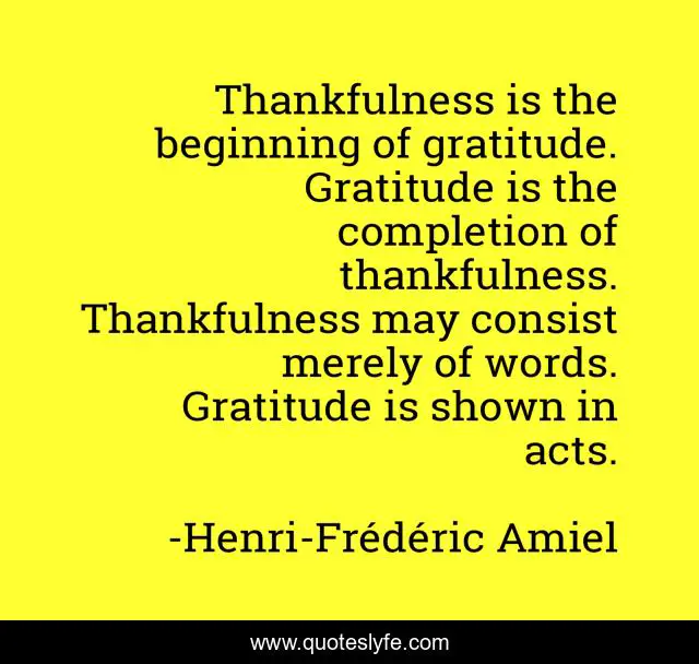 "Henri-Frédéric Amiel Quotes." Quoteslyfe.com, 2025. Sat. 06 Dec. 2025. <https://www.quoteslyfe.com/quote/Thankfulness-is-the-beginning-of-gratitude-Gratitude-180416>.