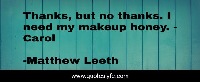 This page presents the quote "Thanks, but no thanks. I need my makeup honey. - Carol". Author of this quote is Matthew Leeth. This quote is about scary, horror, makeup, girls, matthew-leeth, she-was-different, thriller,.