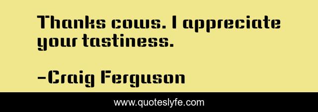 This page presents the quote "Thanks cows. I appreciate your tastiness.". Author of this quote is Craig Ferguson. This quote is about cows, food, tasty,.