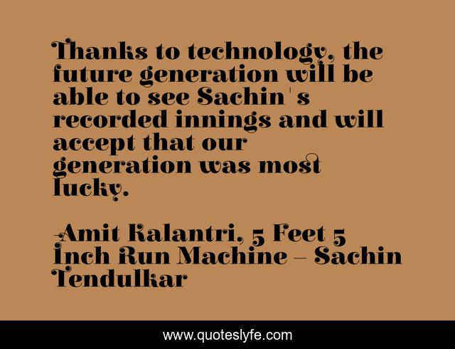 "Amit Kalantri, 5 Feet 5 Inch Run Machine – Sachin Tendulkar Quotes." Quoteslyfe.com, 2025. Sun. 07 Dec. 2025. <https://www.quoteslyfe.com/quote/Thanks-to-technology-the-future-generation-will-197729>.
