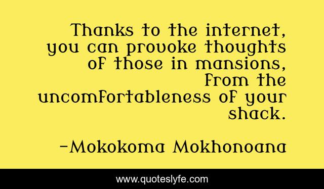 "Mokokoma Mokhonoana Quotes." Quoteslyfe.com, 2025. Fri. 05 Dec. 2025. <https://www.quoteslyfe.com/quote/Thanks-to-the-internet-you-can-provoke-243538>.