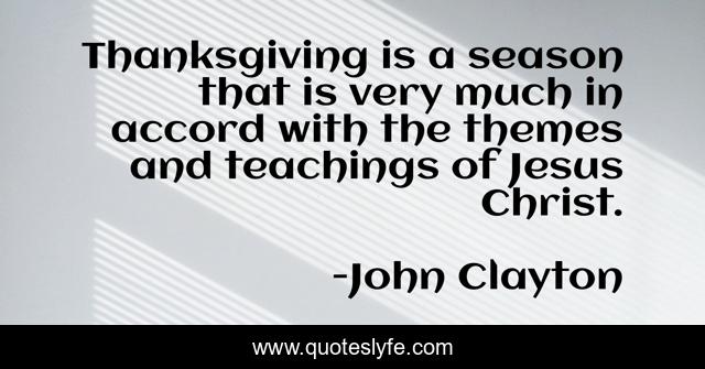 This page presents the quote "Thanksgiving is a season that is very much in accord with the themes and teachings of Jesus Christ.". Author of this quote is John Clayton. This quote is about themes, season, christ,.