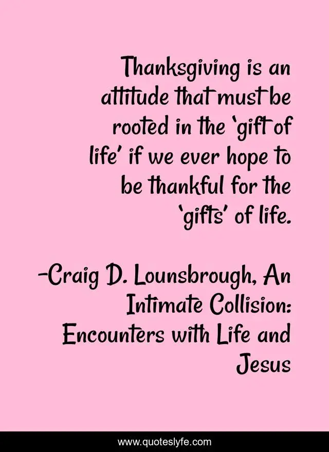 "Craig D. Lounsbrough, An Intimate Collision: Encounters with Life and Jesus Quotes." Quoteslyfe.com, 2025. Sun. 07 Dec. 2025. <https://www.quoteslyfe.com/quote/Thanksgiving-is-an-attitude-that-must-be-179778>.