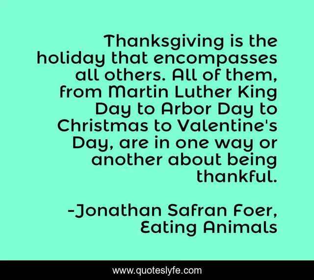 "Jonathan Safran Foer, Eating Animals Quotes." Quoteslyfe.com, 2025. Mon. 08 Dec. 2025. <https://www.quoteslyfe.com/quote/Thanksgiving-is-the-holiday-that-encompasses-all-220653>.