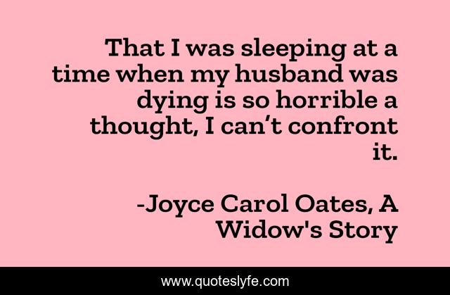 This page presents the quote "That I was sleeping at a time when my husband was dying is so horrible a thought, I can’t confront it.". Author of this quote is Joyce Carol Oates, A Widow's Story. .