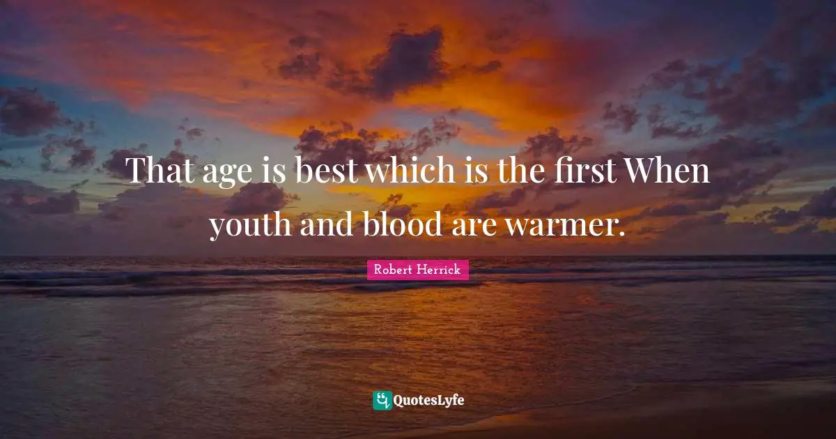This page presents the quote "That age is best which is the first When youth and blood are warmer.". Author of this quote is Robert Herrick. This quote is about age, youth, blood, spring,.