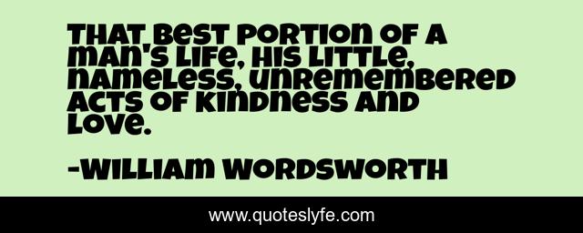 This page presents the quote "That best portion of a man's life, his little, nameless, unremembered acts of kindness and love.". Author of this quote is William Wordsworth. This quote is about life, kindness, love, affection,.