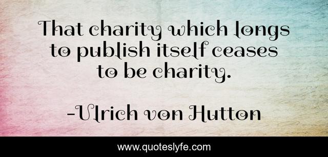 This page presents the quote "That charity which longs to publish itself ceases to be charity.". Author of this quote is Ulrich von Hutton. .