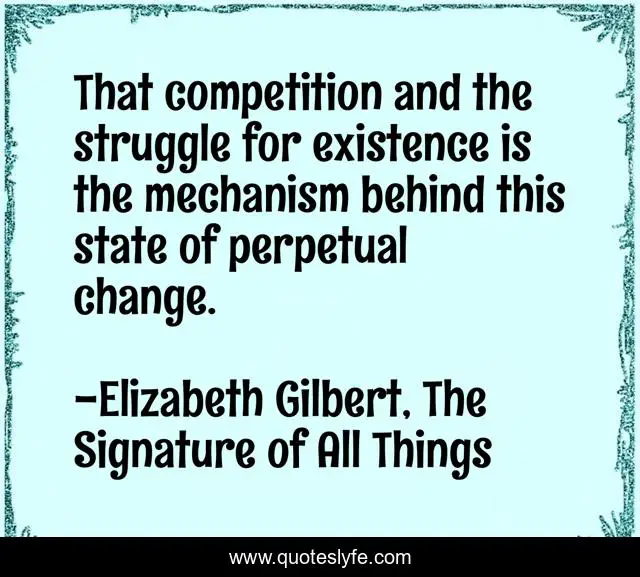 This page presents the quote "That competition and the struggle for existence is the mechanism behind this state of perpetual change.". Author of this quote is Elizabeth Gilbert, The Signature of All Things. This quote is about change, competition, struggle,.