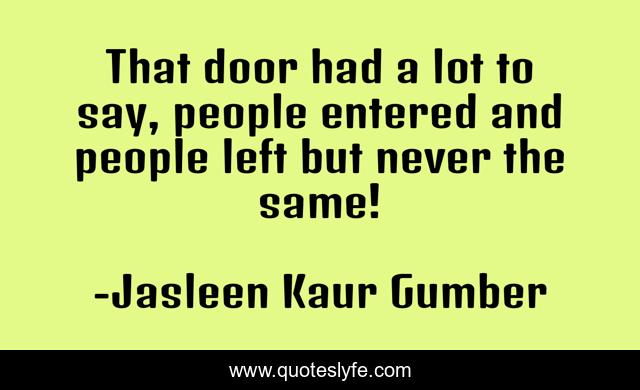 "Jasleen Kaur Gumber Quotes." Quoteslyfe.com, 2025. Sat. 06 Dec. 2025. <https://www.quoteslyfe.com/quote/That-door-had-a-lot-to-say-51878>.