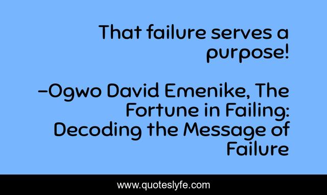 "Ogwo David Emenike, The Fortune in Failing: Decoding the Message of Failure Quotes." Quoteslyfe.com, 2025. Fri. 05 Dec. 2025. <https://www.quoteslyfe.com/quote/That-failure-serves-a-purpose-36226>.