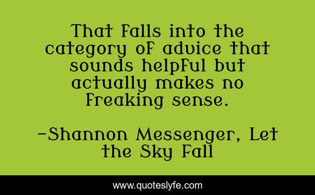 "Shannon Messenger, Let the Sky Fall Quotes." Quoteslyfe.com, 2025. Sat. 06 Dec. 2025. <https://www.quoteslyfe.com/quote/That-falls-into-the-category-of-advice-147217>.