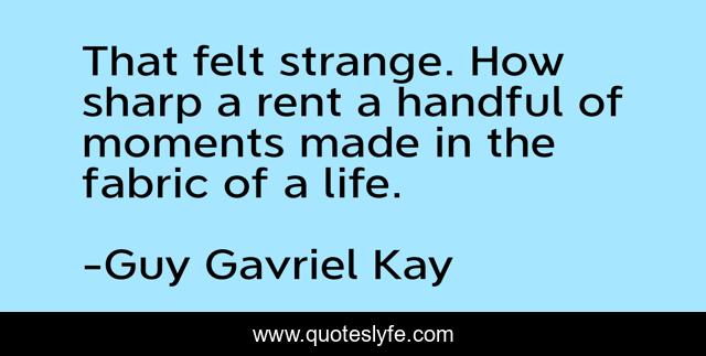 "Guy Gavriel Kay Quotes." Quoteslyfe.com, 2025. Sat. 06 Dec. 2025. <https://www.quoteslyfe.com/quote/That-felt-strange-How-sharp-a-rent-107544>.