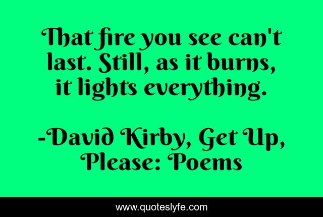 "David Kirby, Get Up, Please: Poems Quotes." Quoteslyfe.com, 2025. Fri. 05 Dec. 2025. <https://www.quoteslyfe.com/quote/That-fire-you-see-can-t-last-221998>.
