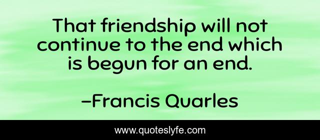 This page presents the quote "That friendship will not continue to the end which is begun for an end.". Author of this quote is Francis Quarles. .