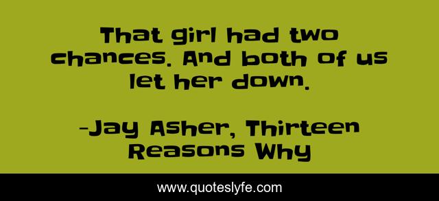 This page presents the quote "That girl had two chances. And both of us let her down.". Author of this quote is Jay Asher, Thirteen Reasons Why. This quote is about chances, despair, hopeless, rape, sad,.