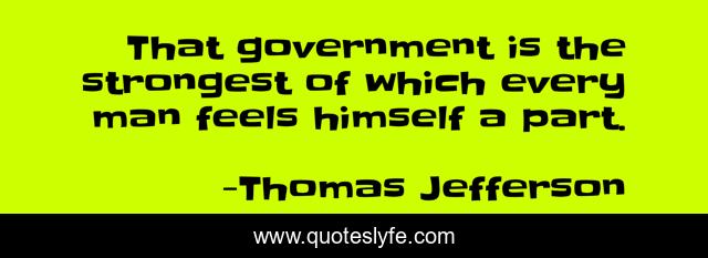 This page presents the quote "That government is the strongest of which every man feels himself a part.". Author of this quote is Thomas Jefferson. This quote is about part, which, man,.