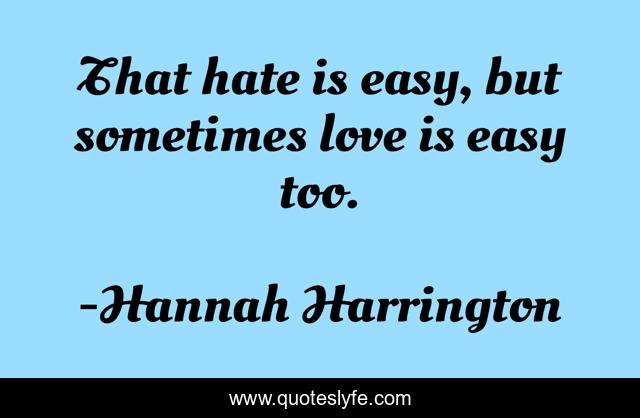 "Hannah Harrington Quotes." Quoteslyfe.com, 2025. Fri. 05 Dec. 2025. <https://www.quoteslyfe.com/quote/That-hate-is-easy-but-sometimes-love-163686>.