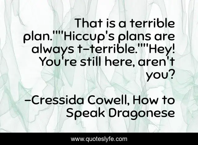 "Cressida Cowell, How to Speak Dragonese Quotes." Quoteslyfe.com, 2025. Tue. 09 Dec. 2025. <https://www.quoteslyfe.com/quote/That-is-a-terrible-plan-Hiccup-s-229631>.