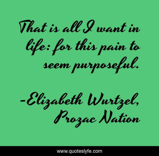 This page presents the quote "That is all I want in life: for this pain to seem purposeful.". Author of this quote is Elizabeth Wurtzel, Prozac Nation. .