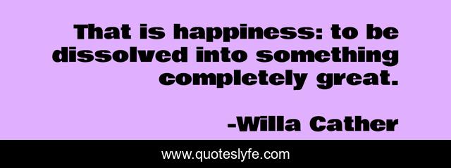 This page presents the quote "That is happiness: to be dissolved into something completely great.". Author of this quote is Willa Cather. .