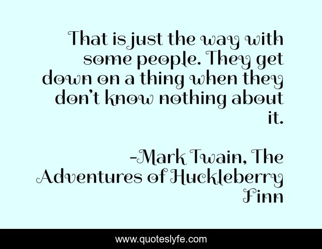 This page presents the quote "That is just the way with some people. They get down on a thing when they don’t know nothing about it.". Author of this quote is Mark Twain, The Adventures of Huckleberry Finn. This quote is about prejudice, knowledge, people,.