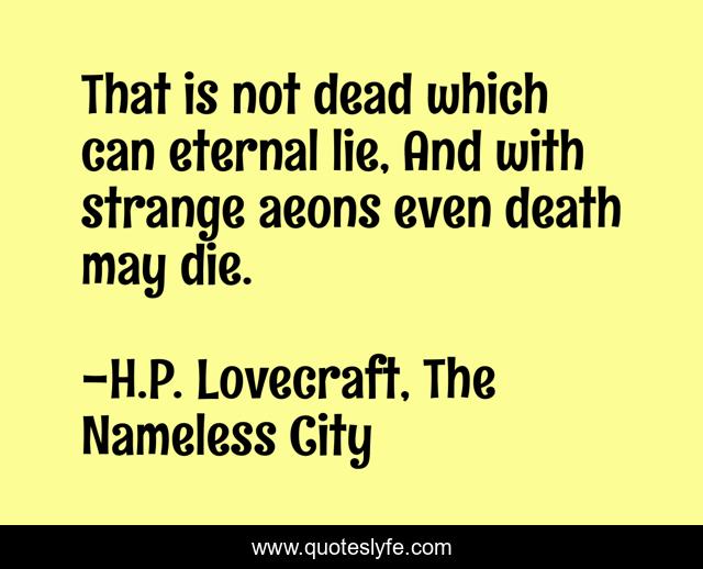 This page presents the quote "That is not dead which can eternal lie, And with strange aeons even death may die.". Author of this quote is H.P. Lovecraft, The Nameless City. .