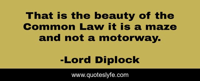 This page presents the quote "That is the beauty of the Common Law it is a maze and not a motorway.". Author of this quote is Lord Diplock. This quote is about law, lawyers,.