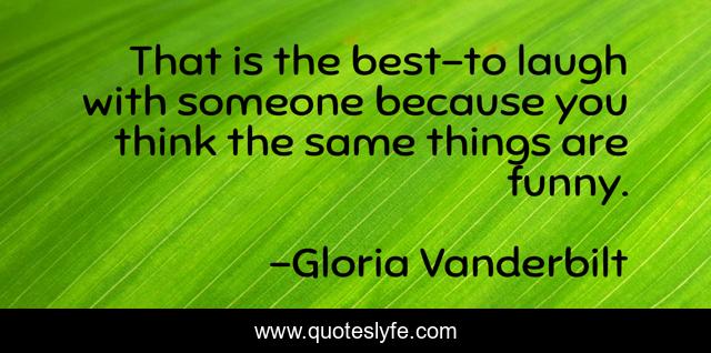 This page presents the quote "That is the best-to laugh with someone because you think the same things are funny.". Author of this quote is Gloria Vanderbilt. .