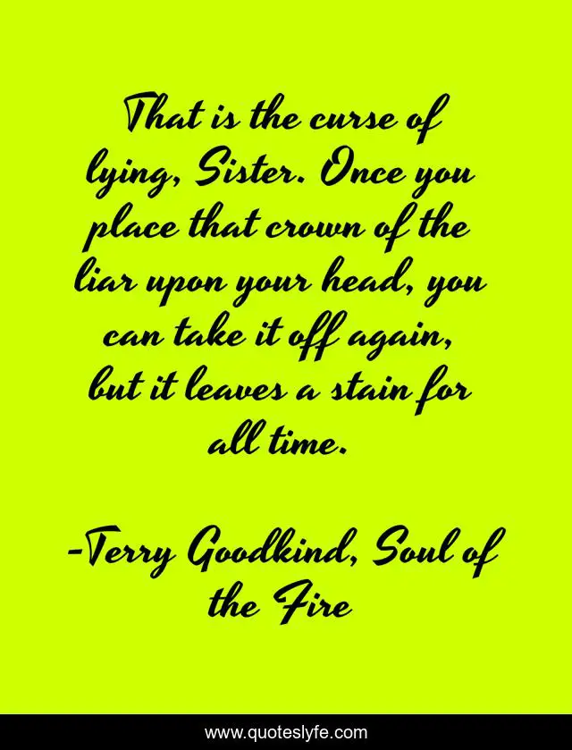 "Terry Goodkind, Soul of the Fire Quotes." Quoteslyfe.com, 2025. Mon. 08 Dec. 2025. <https://www.quoteslyfe.com/quote/That-is-the-curse-of-lying-Sister-9122>.