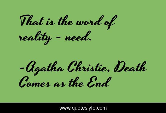 "Agatha Christie, Death Comes as the End Quotes." Quoteslyfe.com, 2025. Sat. 06 Dec. 2025. <https://www.quoteslyfe.com/quote/That-is-the-word-of-reality-need-239882>.