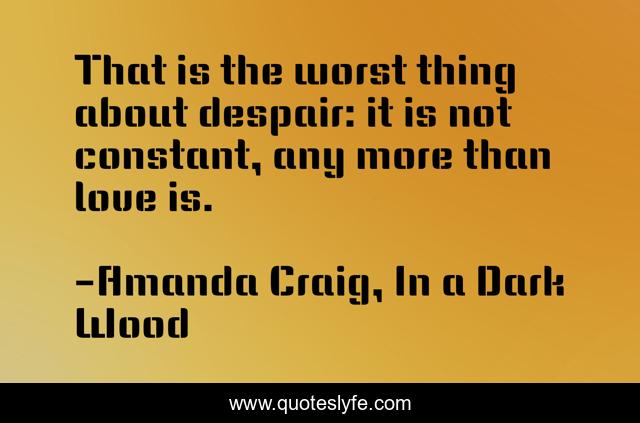 This page presents the quote "That is the worst thing about despair: it is not constant, any more than love is.". Author of this quote is Amanda Craig, In a Dark Wood. This quote is about emotion, suicide, constant, feelings, despair, it-will-pass, depression,.
