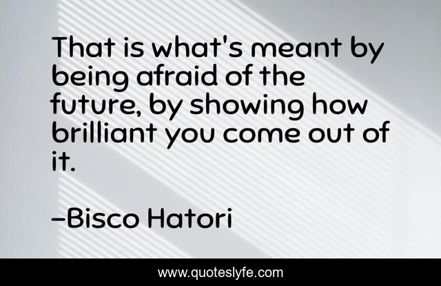 This page presents the quote "That is what's meant by being afraid of the future, by showing how brilliant you come out of it.". Author of this quote is Bisco Hatori. This quote is about fear-of-the-future, fear, future,.