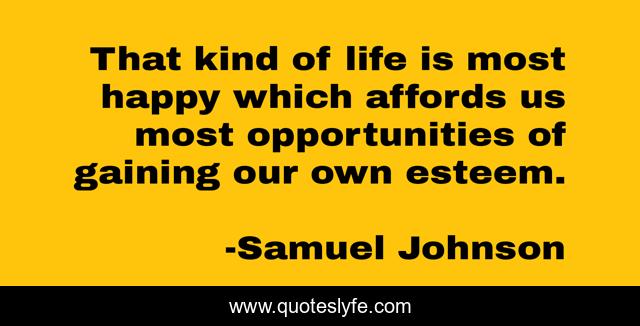 This page presents the quote "That kind of life is most happy which affords us most opportunities of gaining our own esteem.". Author of this quote is Samuel Johnson. .