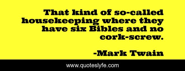 This page presents the quote "That kind of so-called housekeeping where they have six Bibles and no cork-screw.". Author of this quote is Mark Twain. .