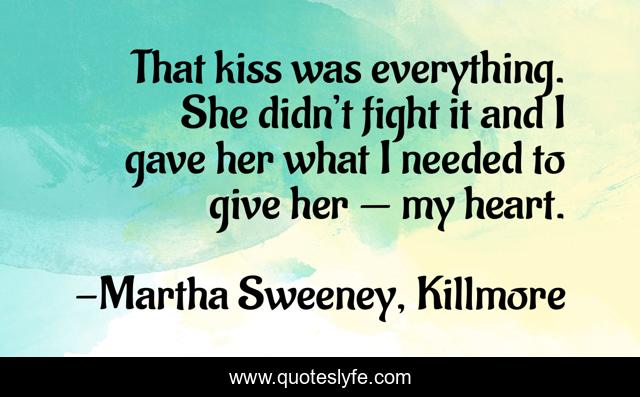 "Martha Sweeney, Killmore Quotes." Quoteslyfe.com, 2025. Sat. 06 Dec. 2025. <https://www.quoteslyfe.com/quote/That-kiss-was-everything-She-didn-t-81017>.