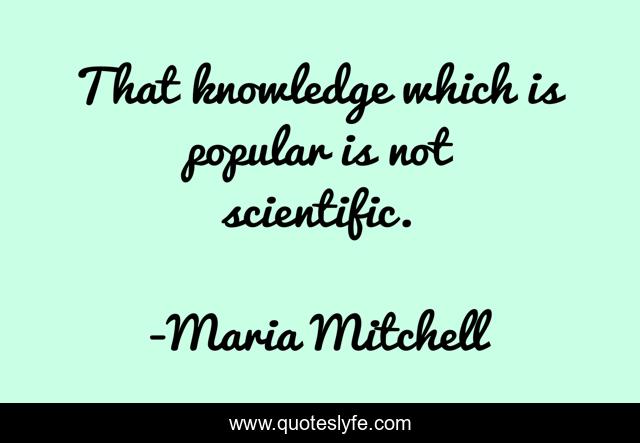 This page presents the quote "That knowledge which is popular is not scientific.". Author of this quote is Maria Mitchell. This quote is about popular, scientific, which,.