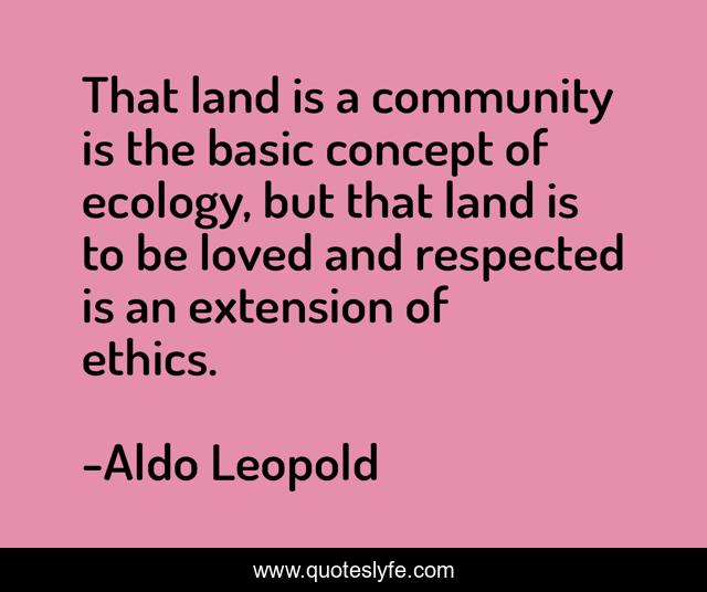 This page presents the quote "That land is a community is the basic concept of ecology, but that land is to be loved and respected is an extension of ethics.". Author of this quote is Aldo Leopold. This quote is about writer, conservationist, philosopher,.